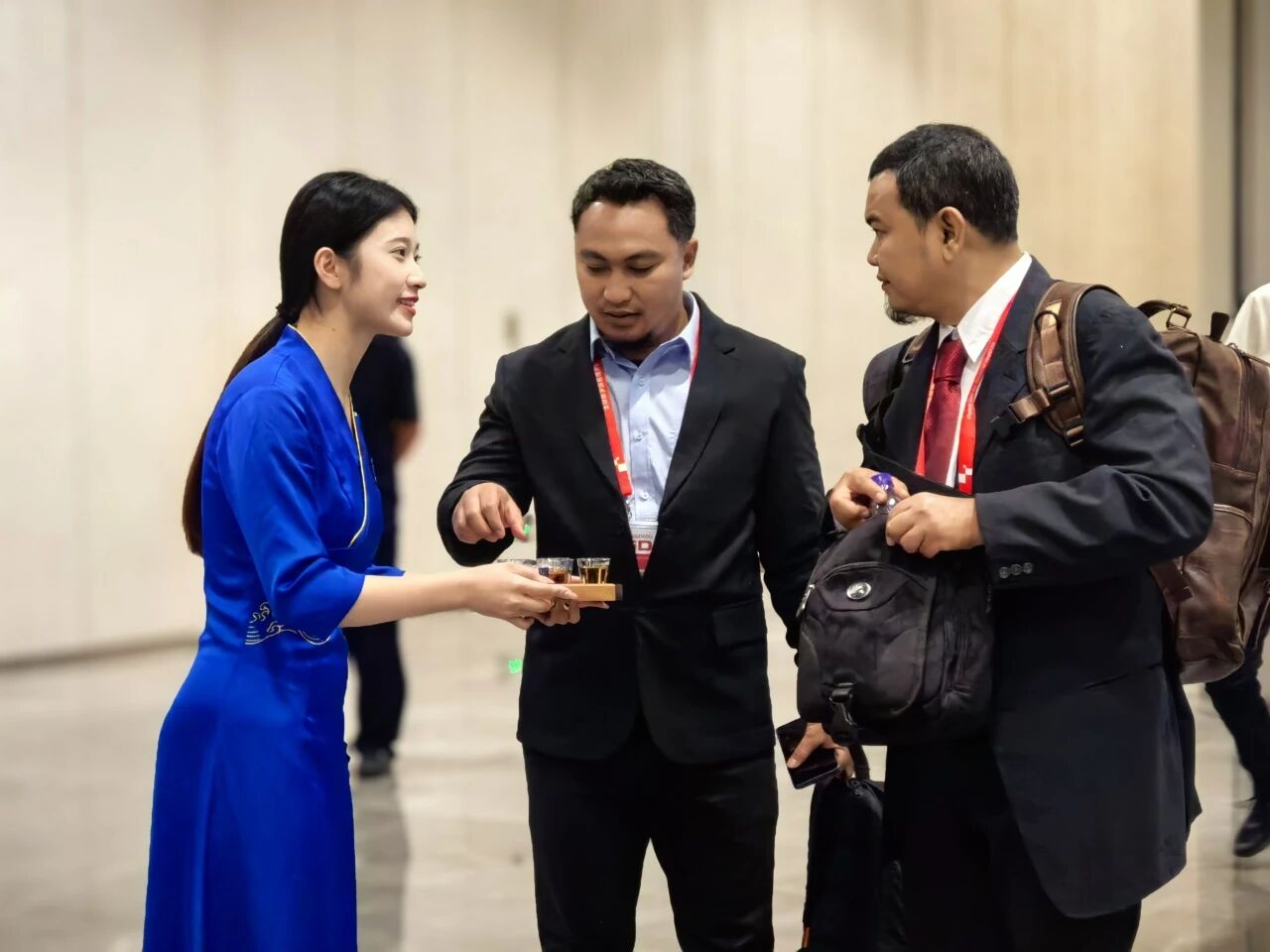 会议茶歇期间,华祥苑国缤茶道队以专业的冲泡技艺,为与会嘉宾呈现了多款代表性茶品。各国代表在品茗交流中,对国缤茶的品质给予了积极评价。一位与会嘉宾表示,国缤茶让人品尝到了"福建山水的味道",感受到了制茶匠心与热情。
